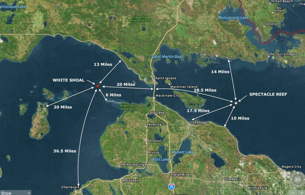 “White Shoal Lighthouse,” Seeing the Light, last modified February 22, 2004, http://www.terrypepper.com/lights/michigan/whiteshoal/whiteshoal.htm.